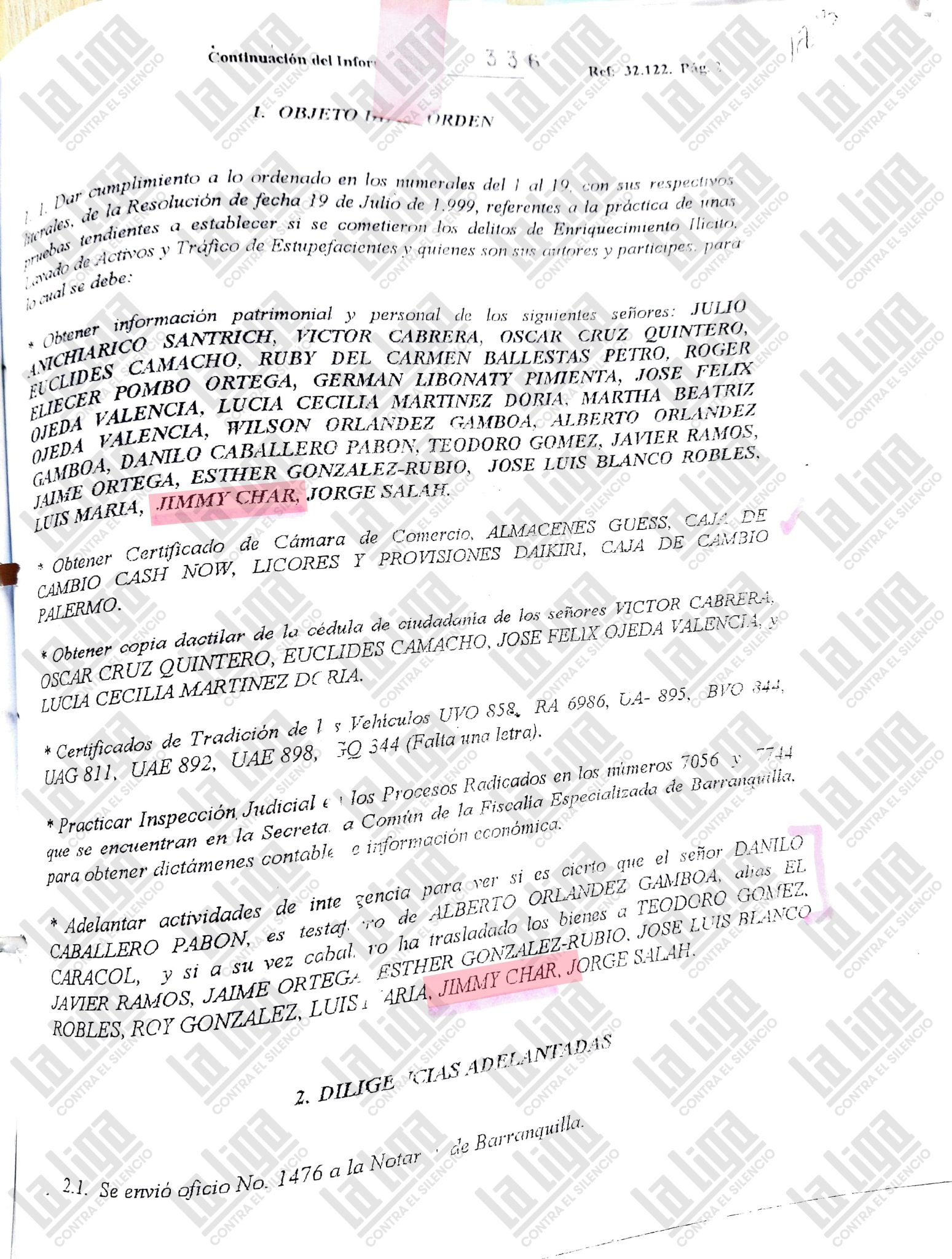 Durante seis meses, una alianza de periodistas y medios reunidos en La Liga Contra el Silencio revisó 78 cuadernos y 16.000 folios del expediente 114. Las pesquisas insinuaban la responsabilidad de Orlande Gamboa y sus cómplices en el secuestro y asesinato del capo José Francisco Valdeblánquez Levette y de su escolta, Edwin González Llerena. En el cruce de información y datos entre distintos organismos y dependencias de la Fiscalía, se anexaron los informes que aluden a los Char y a otros poderosos de la Costa Atlántica.