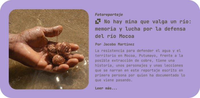El reportaje «No hay mina que valga que valga un río: memoria y lucha en defensa del río Mocoa«.